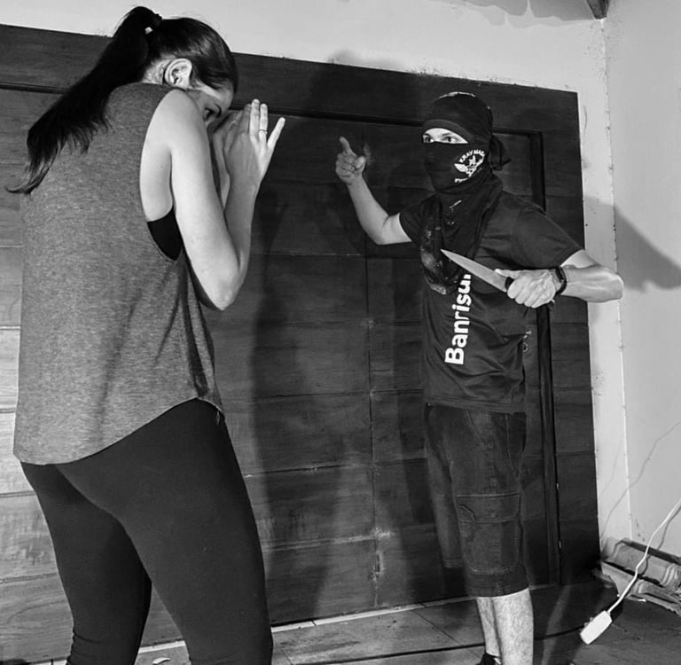 Durante o primeiro modulo, o aluno aprendeu a manter uma certa consciência durante o ''momento crise'' ( a agressão) e isto leva-o entender as probabilidades do envolvimento de armas frias e armas de fogo numa ''simples briga'' na rua ou em qualquer outro cenário. Defender-nos de uma agressão com um sujeito armado com uma faca é uma situação extremamente difícil e perigosa onde as chances de sairmos ilesos da situação diminuem consideravelmente.